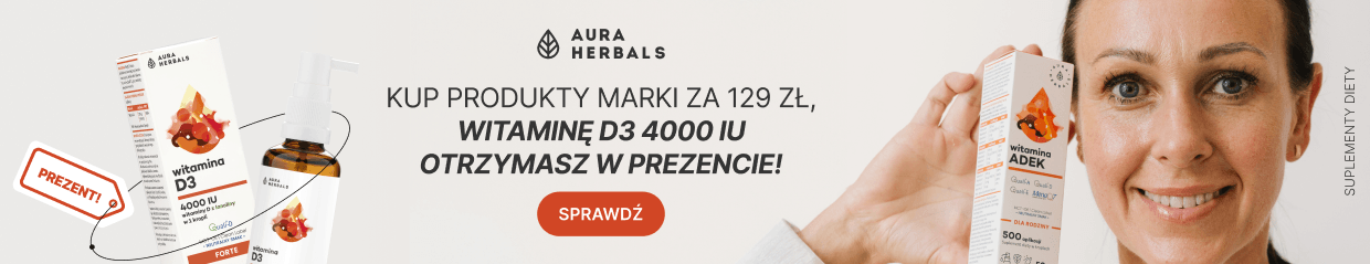 Aura Herbals to polska marka suplementów diety, która istnieje od 2007 roku. Oferuje wyłącznie naturalnie produkty, pochodzące z otaczającej nas przyrody. Dba, by jej preparaty były skuteczne i odznaczały się wysoką przyswajalnością. Działa zgodnie z ideą Clean Label oraz HACCP. Dzięki temu, mimo krótkiej historii, może szczycić się posiadaniem zaufania tysiąca konsumentów.